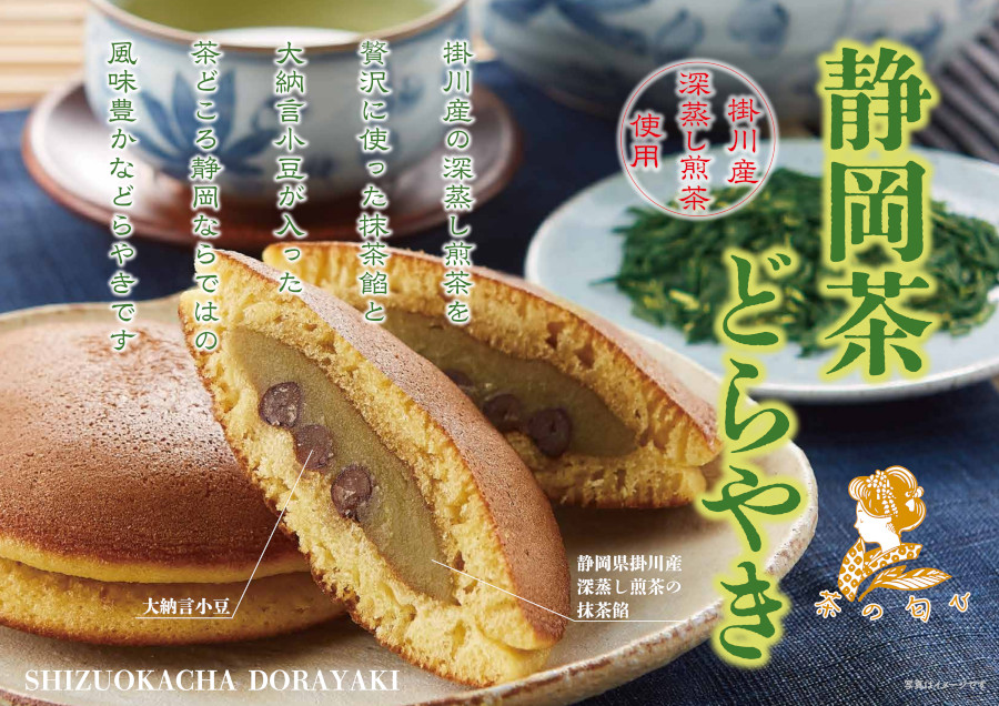 静岡県掛川産深蒸し煎茶の香りが広がる、贅沢などら焼き