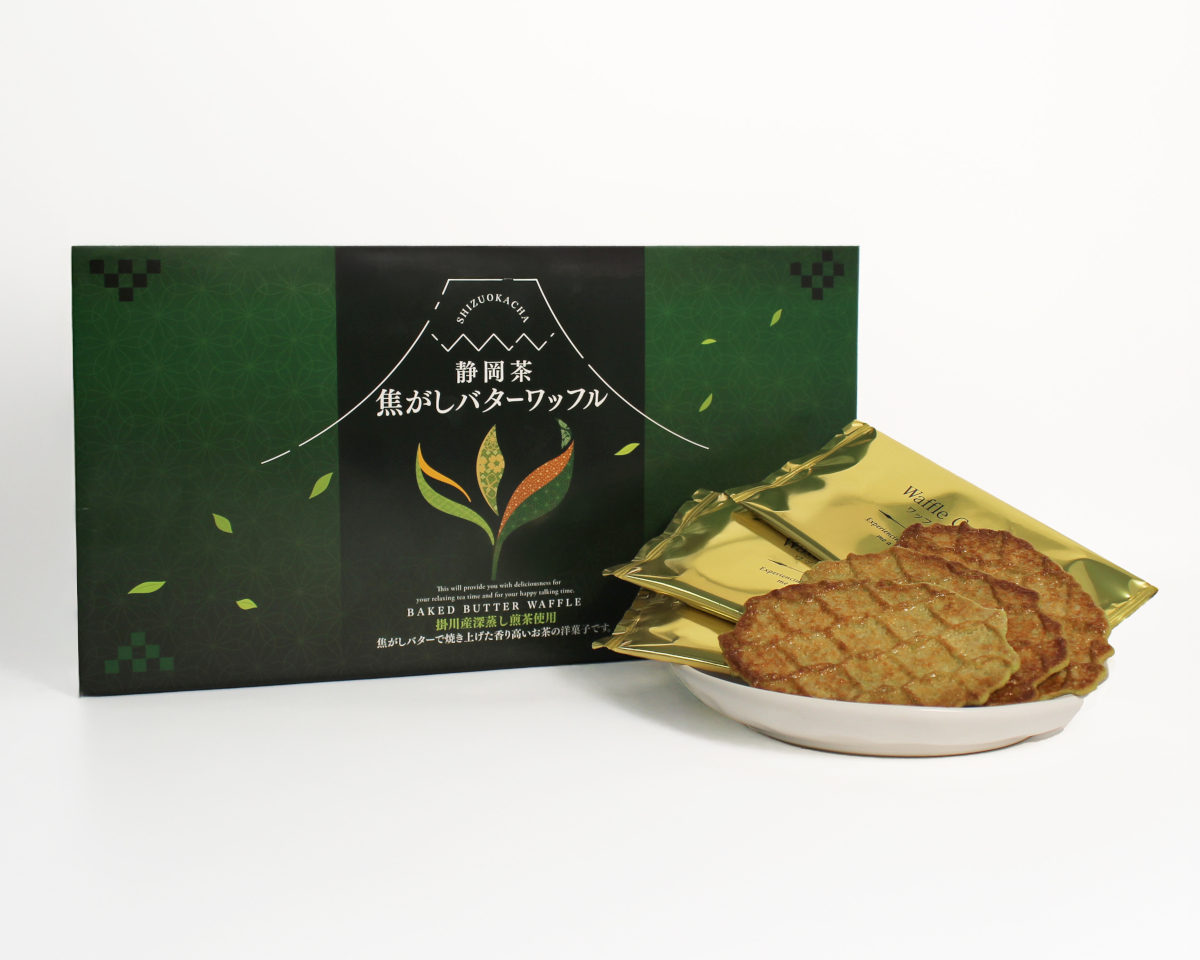このたび当社では、静岡県掛川産の深蒸し煎茶を使用した新商品「静岡茶 焦がしバターワッフル」を発売いたしました。